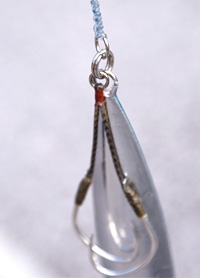 シングルフック/ダブルフック(地獄針)どちらでも装着可ですが、スローピッチジャーク時には地獄針のほうがフックの回転が少なく動作が安定します。さらに、よりソフトな動きを演出したい場合にはテールフックを装着すると効果的です。これはフォールバイトを重視したコントロールの際には特に有利です。